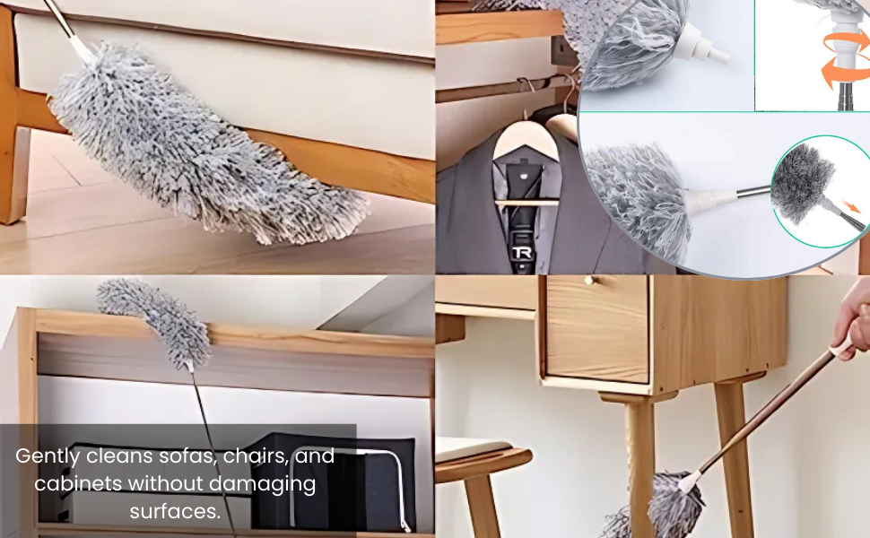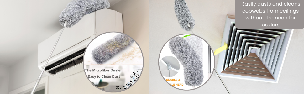 - 【BENDABLE & FLEXIABLE HEAD】 The Head of Our Long Telescoping Duster is Flexible and Bendable. It Can be Bent into Various Angles You Want, Cleaning all Kinds of Dead Ends and Difficult Positions, it is a Good Helper for Housework.